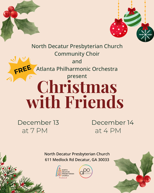 The Atlanta Philharmonic Orchestra (APO) and North Decatur Presbyterian Church (NDPC) are joining together to present a joyful holiday tradition: a free Christmas concert filled with festive favorites and community carol singing.
